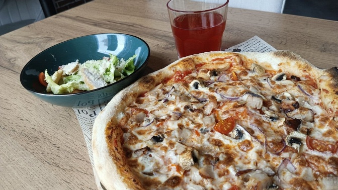 В меню представлены блюда на любой вкус: салаты, пицца, паста, супы, закуски, десерты и не только. Приходите сюда за душевной атмосферой и приятным отдыхом!
