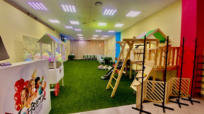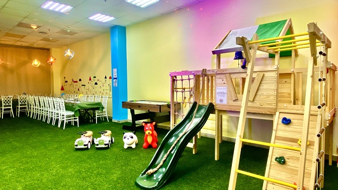 — игровая зона (домик, горка, аэрохоккей, талакары);